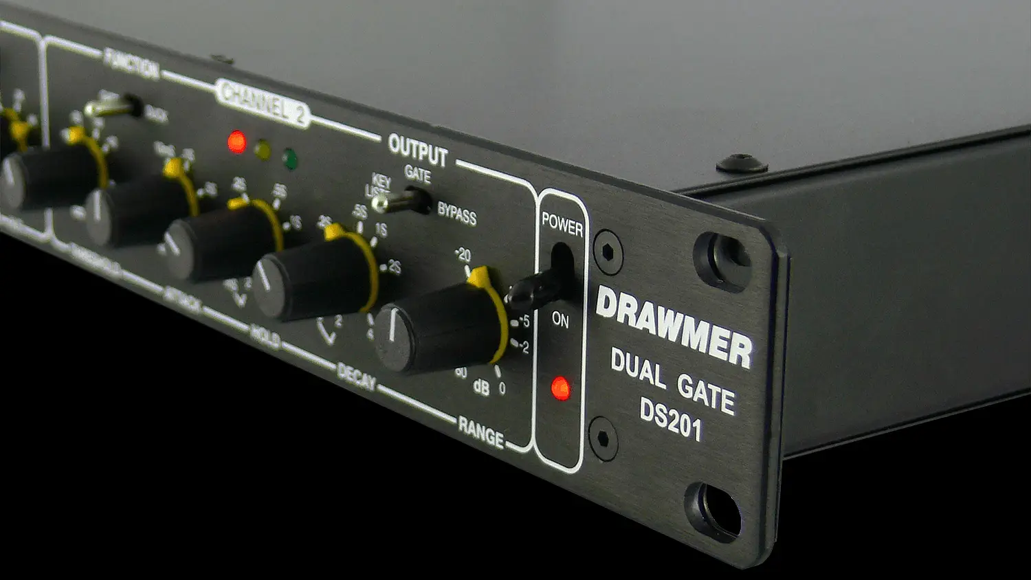 The industry-standard high-end noise gate, the Drawmer DS201, is a sophisticated dual-channel noise gate packed with innovative features pioneered by Drawmer. Essential for sound engineers, it includes unique capabilities not found in conventional noise gates, such as variable high and lowpass filters for “frequency conscious gating”.