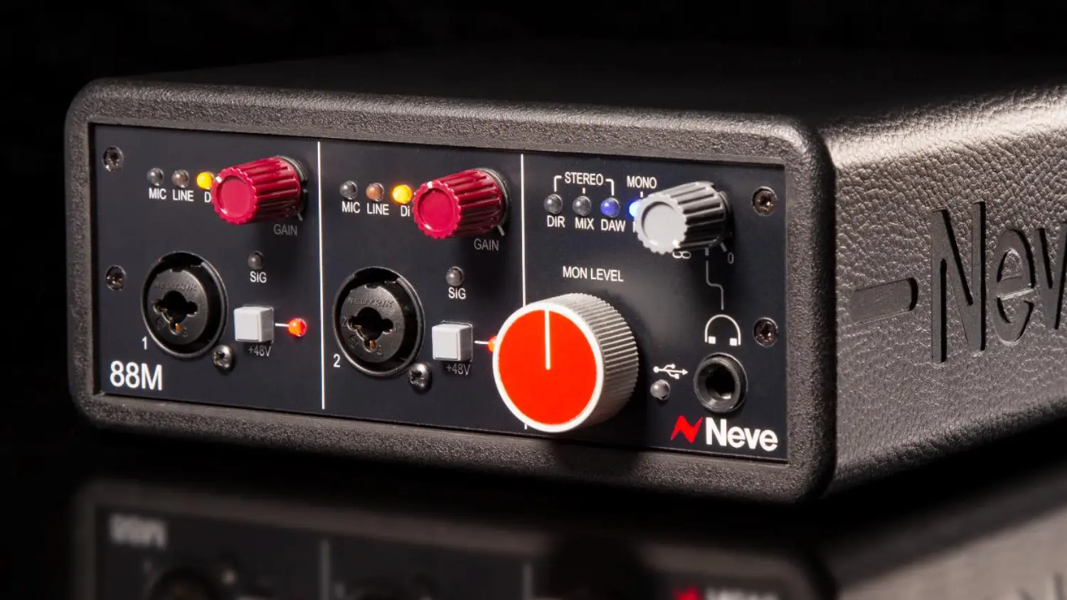 The Neve 88M’s headphone amplifier provides ample headroom for professional headphones, with independent level control and a front-mounted TRS connection.