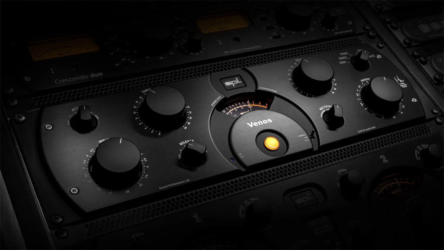 The SPL Venos Stereo Bus Compressor brings variable bias tube compression into the modern era with hyper compression modes, extensive stepped controls, SPL 120V technology, and robust construction, offering powerful, musical, and finely detailed stereo bus dynamics processing.